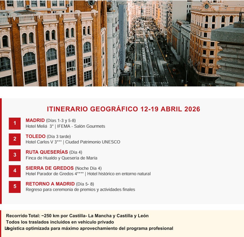 * Asistencia a la fase final del Campeonato GourmetQuesos «Los Mejores Quesos de España 2026»